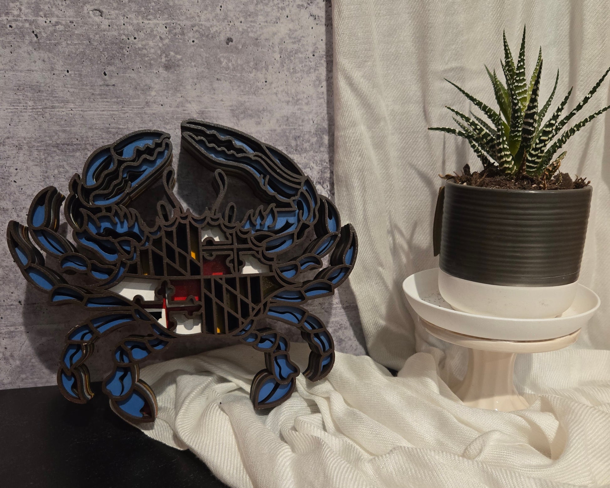 This 8" handcrafted, wooden, multilayered Maryland crab combines precision laser engraving with creative design. Each piece reflects a balance of craftsmanship, innovation, and heart — perfect for home décor, gifts, or special events. Our mission is to turn natural materials into timeless works of art that inspire connection and joy.
