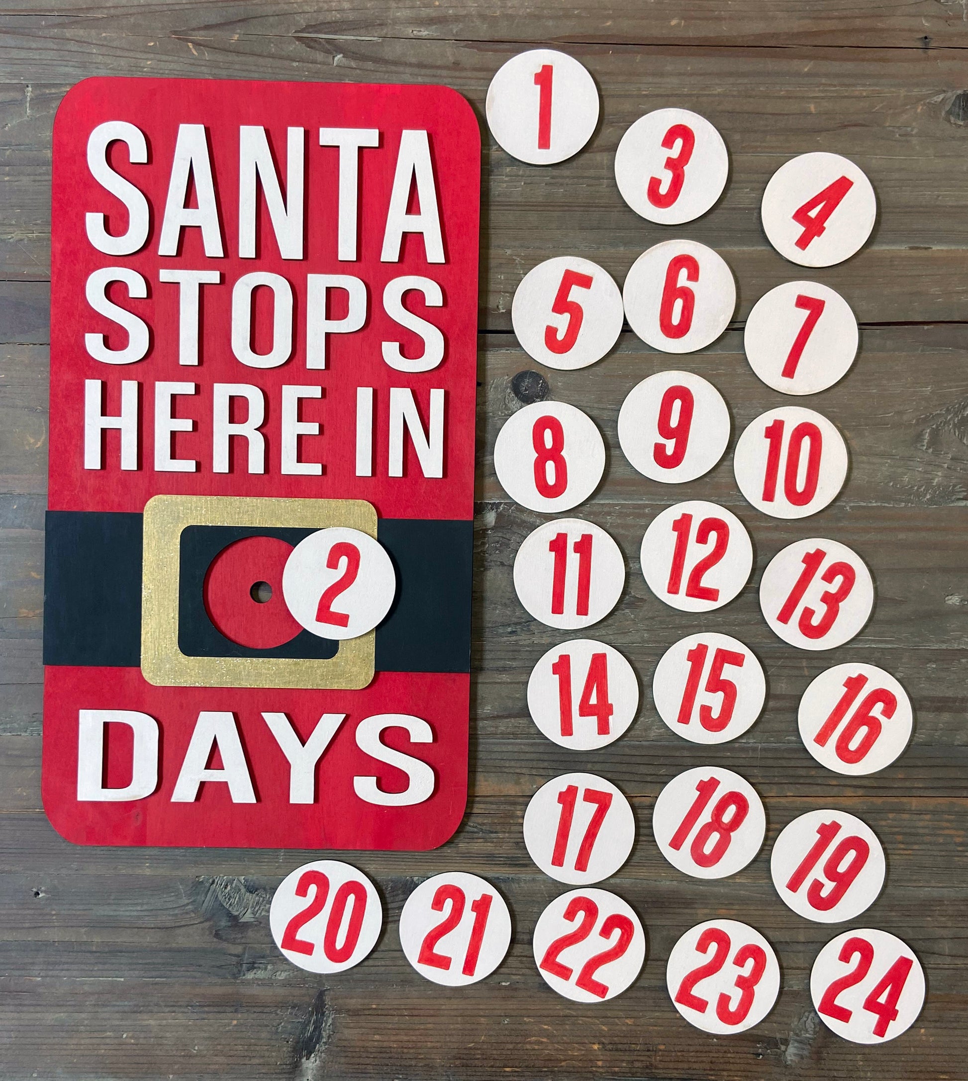 Decorative Wooden Santa Countdown Sign – Intricate patterns, borders, or ornamental designs cut or engraved into wood for home décor, gifts, or event signage.